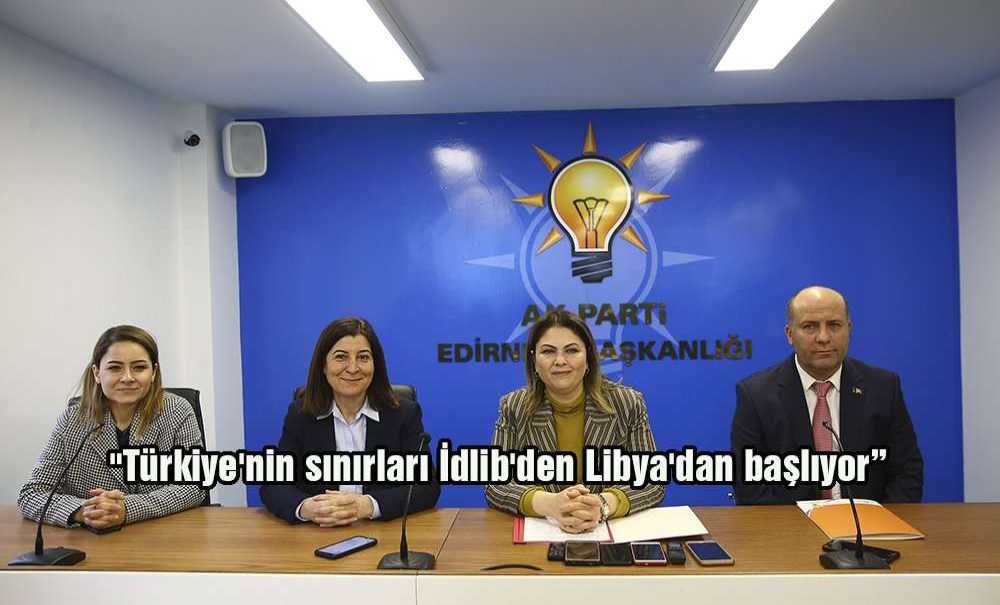 AK Parti Edirne Milletvekili Fatma Aksal, "Türkiye'nin sınırları İdlib'den Libya'dan başlıyor. O sınırları güvenlik altına alamazsak burada Edirne'de huzur içinde oturamayız." dedi.