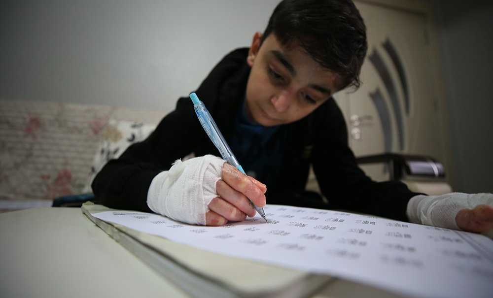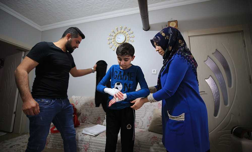 Ellerinde de oluşan yaraların sonucunda parmakları birbirine yapışan Yalvan, yaklaşık 6 ay önce Akdeniz Üniversitesi Tıp Fakültesi Hastanesinde geçirdiği ameliyat sonrası ellerini kullanmaya başladı.