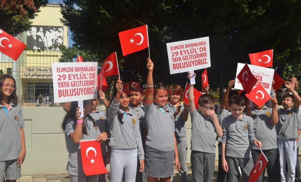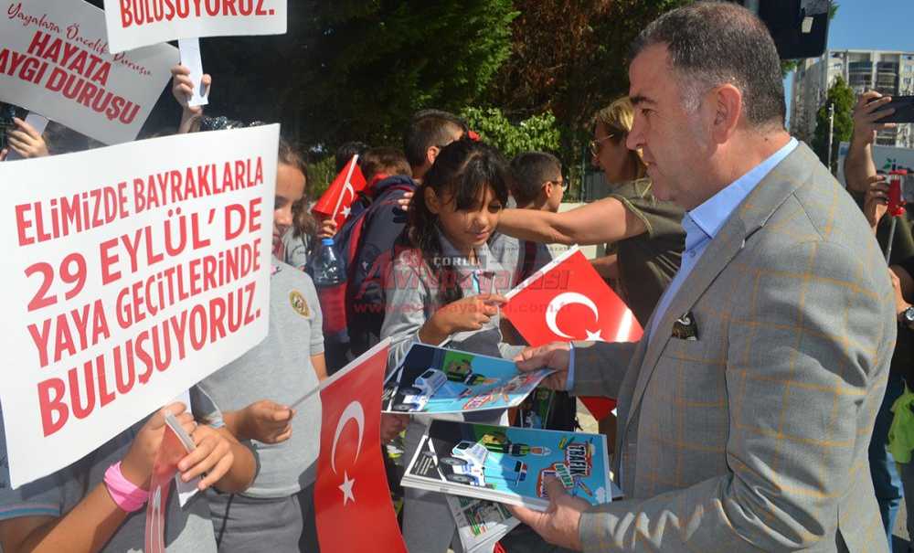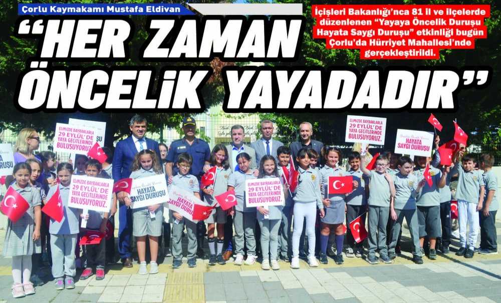 Sürücülerin dikkatini çekmek ve yayanın öncelikli olduğunu göstermek için düzenlenen etkinlikte öğrenciler ellerinde Türk bayraklarıyla ve "yayaya saygı sloganlarıyla" yaya geçidinden geçerek sürücülere trafikte yaya önceliğinin bilincini aşıladı. Çorlu Kaymakamı Eldivan, İlçe Jandarma Komutanı Türk, Emniyet Müdürü Tabak ve Başkan Yardımcısı yaya önceliğine dikkat çekmek yaya geçidinin bir şeridini kırmızıya boyadı.