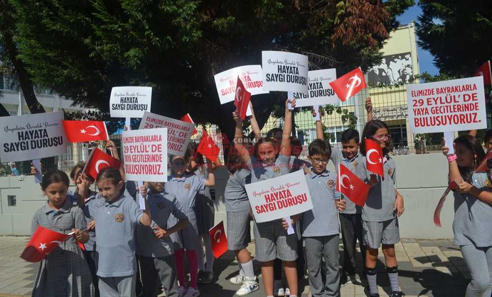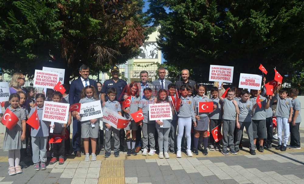 İçişleri Bakanlığı'nca 81 il ve ilçelerde düzenlenen “Yayaya Öncelik Duruşu Hayata Saygı Duruşu” etkinliği bugün Çorlu'da Hürriyet Mahallesi'nde gerçekleştirildi.