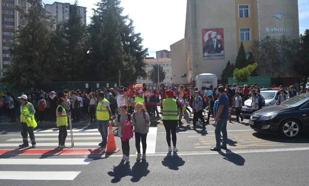 Öğrenciler Ellerinde Bayraklarla Yaya Saygı Diye Bağırdı