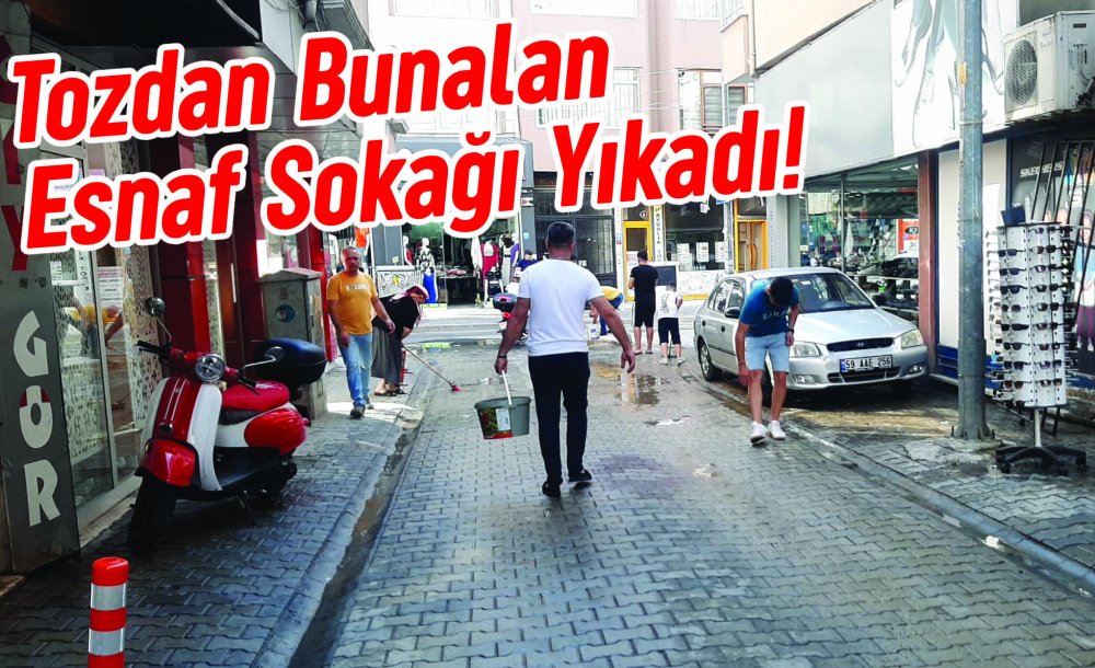 Geçtiğimiz gün Çorlu Belediyesi’ne ait çöp kamyonunun yola gömüldüğü Kurt Mustafa Sokakta belediye ekipleri yolun tamirini yapmıştı. Yolda biriken toz ve kumların dükkânlara girmesi nedeniyle esnaf kendi başının çaresine baktı. Ellerine kova ve fırçaları alan bölge esnafı belediyenin yapması gereken işi kendileri yaptı. Kova ve fırçalar yardımıyla Kurt Mustafa Sokağı baştan ayağa yıkayan bölge esnafı tozdan ve dükkânlara girin kumdan bıktık bizde elimize fırçaları alarak sokağımızı yıkadık” ifadelerini kullandı.