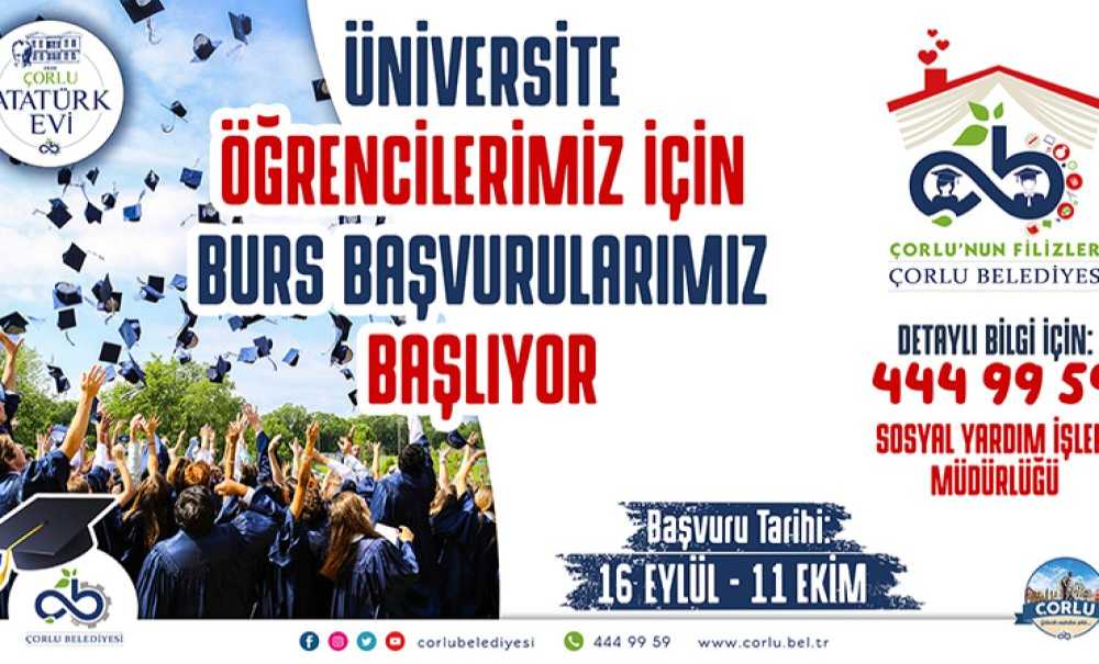 Çorlu Belediyesi tarafından 2021 yılında hayata geçirilen “Çorlu’nun Filizleri” projesi kapsamında ihtiyaç sahibi üniversite öğrencilerine verilecek olan “Yükseköğrenim Burs Yardımı” için başvurular 16 Eylül’de başlıyor.