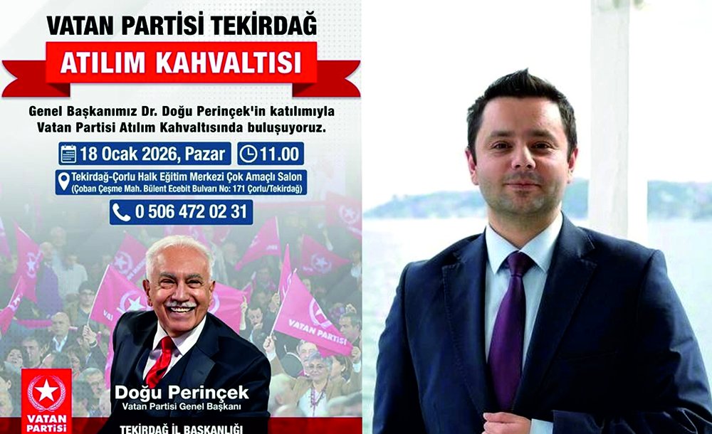 Vatan Partisi Tekirdağ İl Başkanlığı tarafından düzenlenecek atılım kahvaltısında Doğu Perinçek’in ülke ve dünyadaki gelişmelerle ilgili önemli mesajlar vermesi bekleniyor. Çorlu Halk Eğitim Merkezi’nde düzenlenecek kahvaltı 18 Ocak Pazar Günü Saat 11:00’da Çorlu Halk Eğitim Merkezi’nde yapılacak. Düzenlenecek kahvaltıyla ilgili konuşan Vatan Partisi Tekirdağ İl Başkanı Ozan Özarslan tüm vatandaşları kahvaltıya davet etti. Doğu Perinçek’in kahvaltı programında ülke ve dünyadaki gelişmelerle ilgili önemli mesajlar da vereceğini belirten Ozan Özarslan, kahvaltının Halk Eğitim Merkezi’nde Pazar günü yapılacağını ifade etti.
