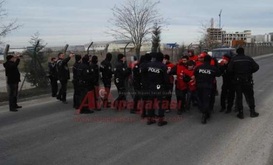 Çorlu’da TIR’ların metal fabrikasından çıkışını engellemeye çalışan grevdeki işçilere Çevik Kuvvet ekipleri müdahale etti.