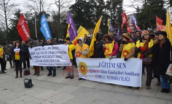 Eğitim Sen Çorlu Temsilciliği tarafından bir günlük uyarı boykotu ve iş bırakma eylemi nedeniyle Atatürk Meydanı’nda bir basın açıklaması düzenlendi.