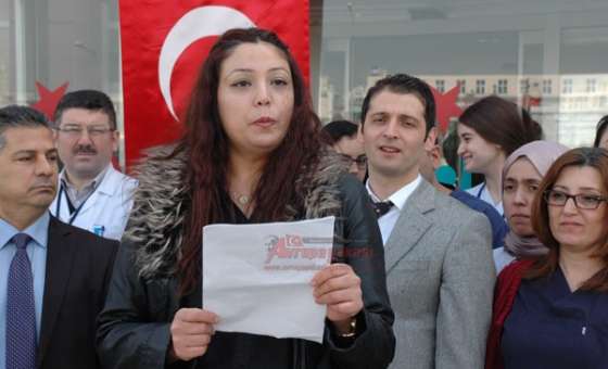 Çorlu Devlet Hastanesi önünde basın açıklaması gerçekleştiren Sağlık – Sen üyesi sağlık çalışanları yıpranma payı haklarını istediklerini kaydettiler.